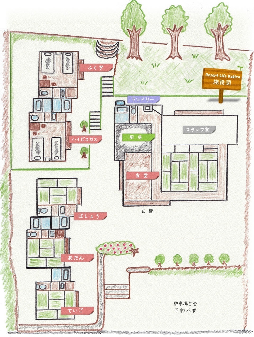 - Resort life Kabiraは全5部屋(各部屋とも独立)の小さな宿です。母屋は、受付&食堂になっております。