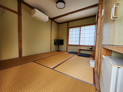 | バス・シャワートイレ(浴槽有り、全室バス・トイレ独立タイプ)・WiFi・エアコン・TV・冷蔵庫・電気ポット・ドライヤー・洗濯ハンガー・サンダル※共用設備(屋外)洗濯機(100円/回)・乾燥機(200円/回) |